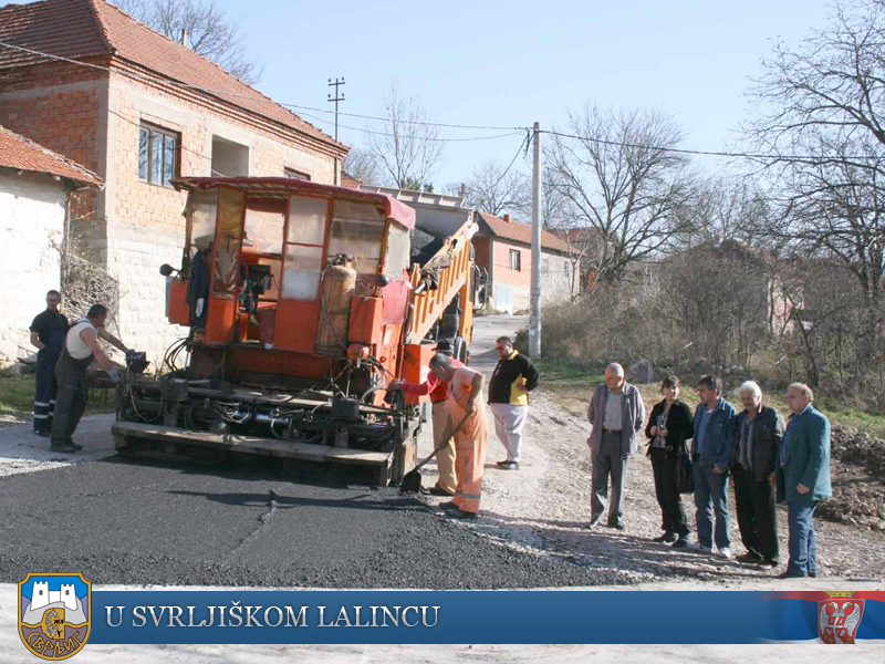 Žitelji sela Lalinac u svrljiškoj opštini dobili su ove sedmice asfalt u još dve ulice. Reč je o gornjem delu ulice u mahali ,,Dira,, i mahali ,,Kokići,, od osnovne škole do bolnice. Na početku radova gradilišta je obišao predsednik opštine Milija Miletić.