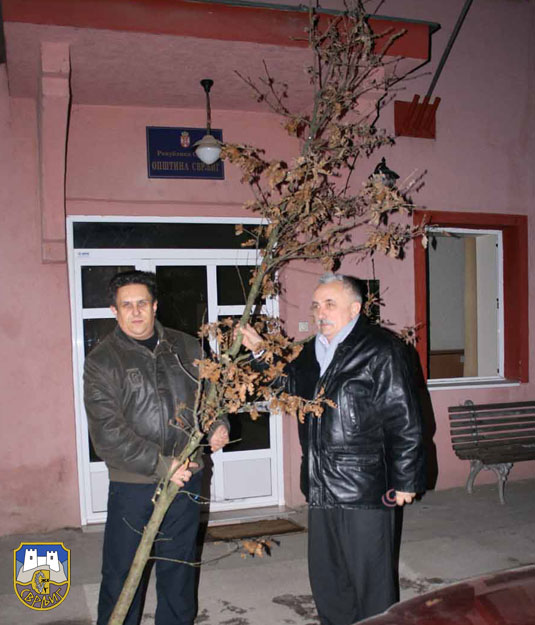 Posečeno božićno drvo predsednik Miletić i njegov zamenik doneli su i postavili ispred zgrade Opštinske uprave kao znak tradicije, vere i domaćinskog odnosa.