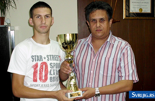 Kapiten rukometaša Nikola Vasić sa predsednikom opštine Svrljig.
