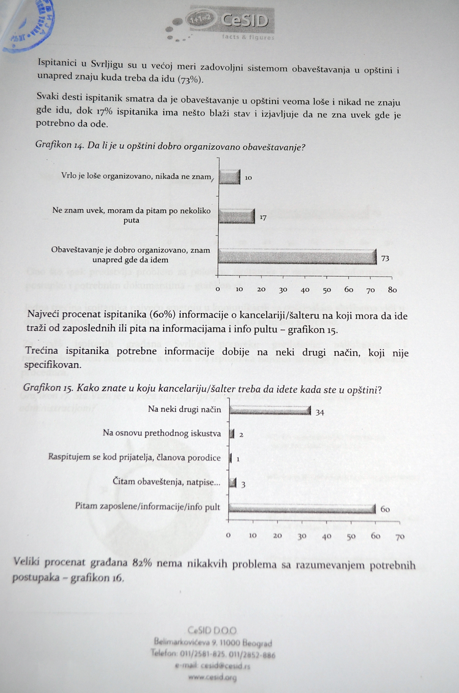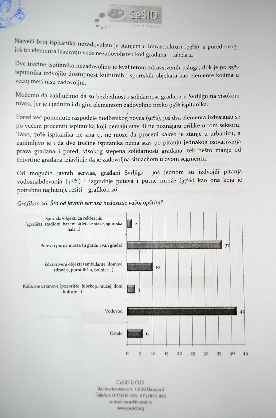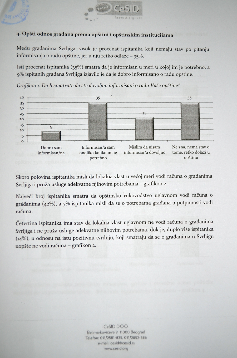 Но, пре приступања европартнесрву,врши се истраживање задовољства грађана како би се добила реална слика о ситуацији на територији Сврљига и како би се на што објективнији начин дошло до релевантних и прецизних података о потребама грађана а који ће бити коришћени у изради пројекта. Истраживање на подручју општине обавио је ЦЕСИД и ових дана доставио своје налазе и оцену, поред осталих, општини Сврљиг.