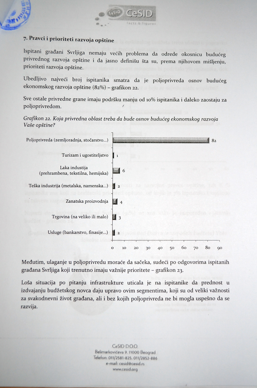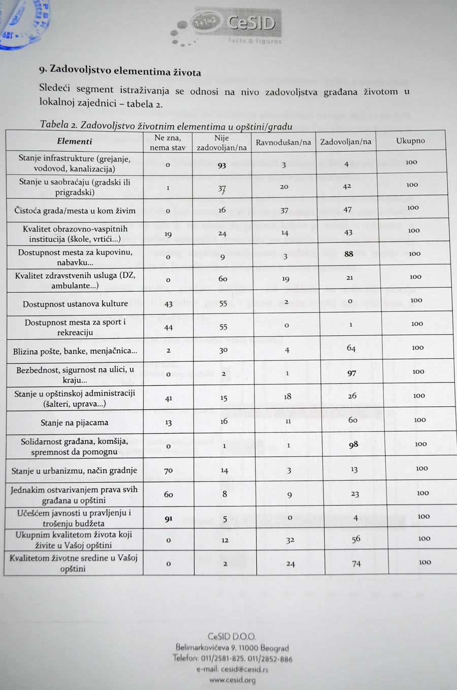 Као основ будућег развоја 82 одсто испитаника види економски развој а чак 90 одсто стање безбедности и солидарности оцењује најбољом оценом.